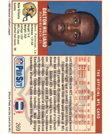 1989 NFL Pro Set Dalton Hilliard Football Card #269