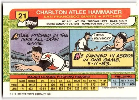 1989 Topps Charlton Atlee Hammaker Baseball Card #21