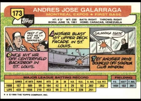 1989 Topps Andres Jose Galarraga Baseball Card #173