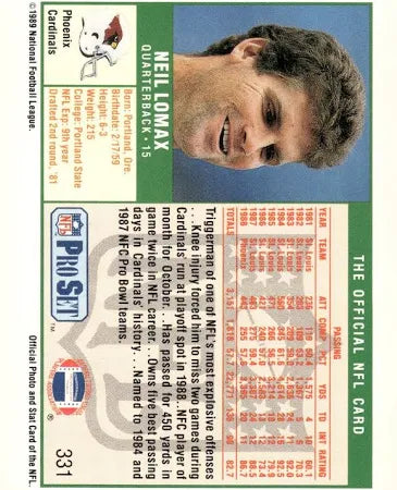 1989 NFL Pro Set Neil Lomax Football Card #331