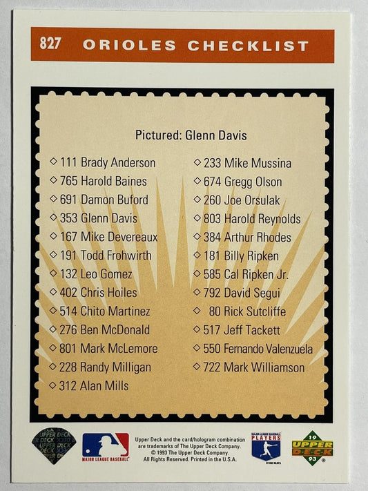 1993 Upper Deck Orioles Checklist Baseball Card #827