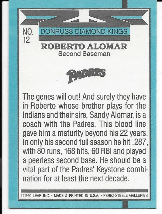 1990 Donruss Diamond Kings Roberto Alomar Baseball Card #12