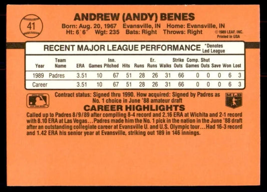1990 Donruss Andrew (Andy) Benes Baseball Card #41
