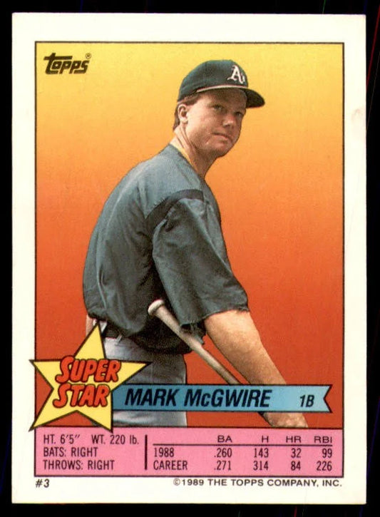 1989 Topps Super Star Sticker Mark McGwire Baseball Card #3