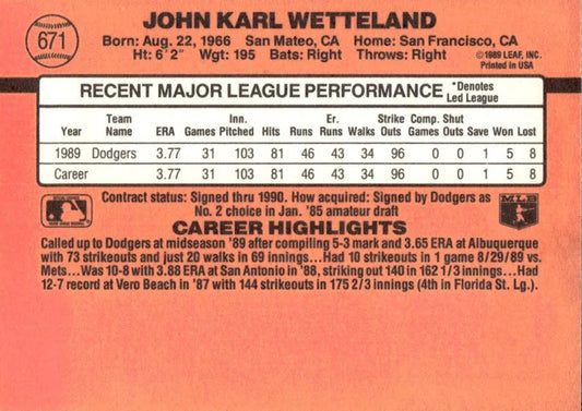 1990 Donruss John Karl Wetteland Baseball Card #671