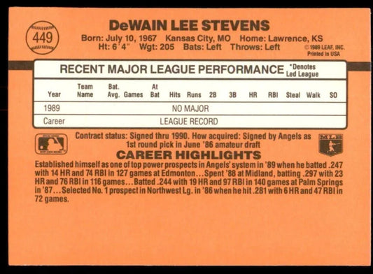 1990 Donruss DeWain Lee Stevens Baseball Card #449