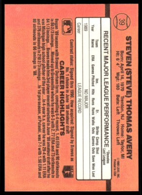 1990 Donruss Steven (Steve) Thomas Avery Baseball Card #39