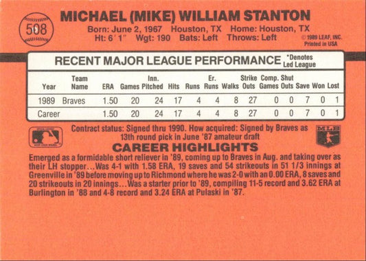 1990 Donruss Michael (Mike) William Stanton Baseball Card #508