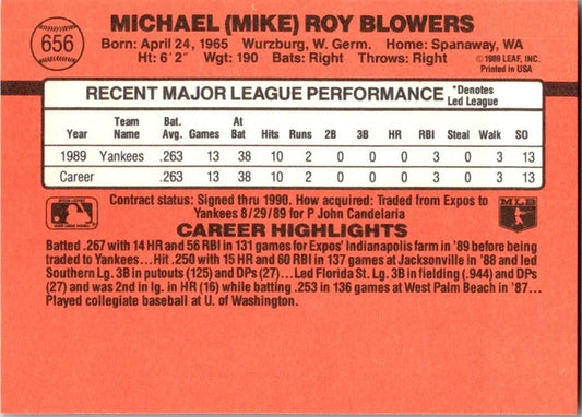 1990 Donruss Michael (Mike) Roy Blowers Baseball Card #656