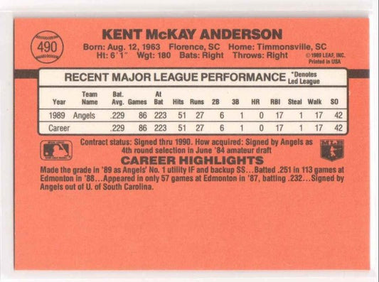 1990 Donruss Kent McKay Anderson Baseball Card #490