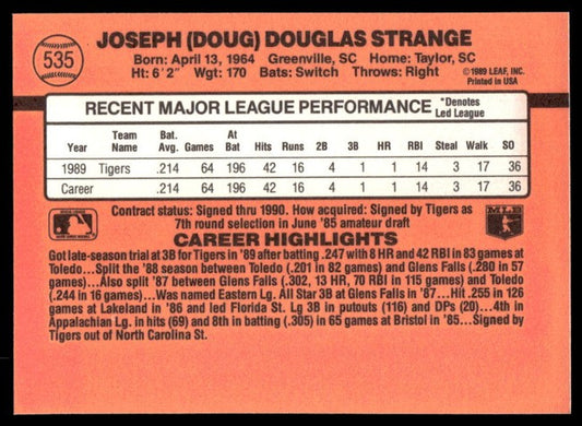 1990 Donruss Joseph (Doug) Douglas Strange Baseball Card #535