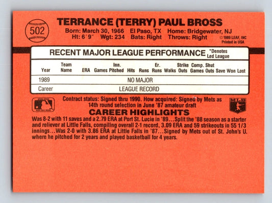 1990 Donruss Terrance (Terry) Paul Bross Baseball Card #502