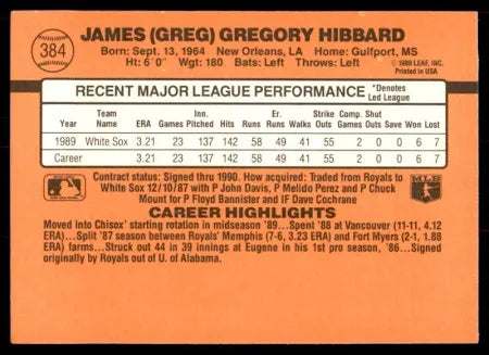 1990 Donruss James (Greg) Gregory Hibbard Baseball Card #384