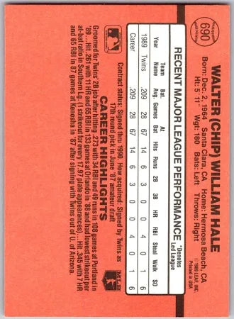 1990 Donruss Walter (Chip) William Hale Baseball Card #690