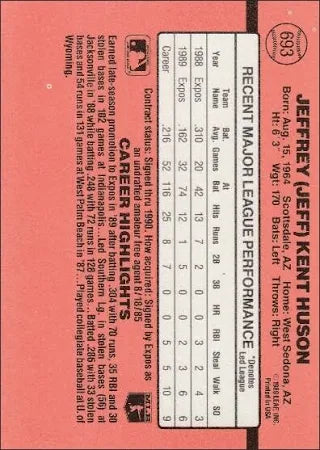 1990 Donruss Jeffrey (Jeff) Kent Huson Baseball Card #693