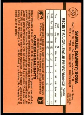 1990 Donruss Samuel (Sammy) Sosa Baseball Card #489