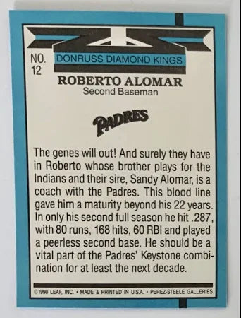 1990 Donruss Diamond Kings Roberto Alomar Baseball Card #12