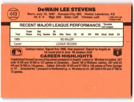 1990 Donruss DeWain Lee Stevens Baseball Card #449