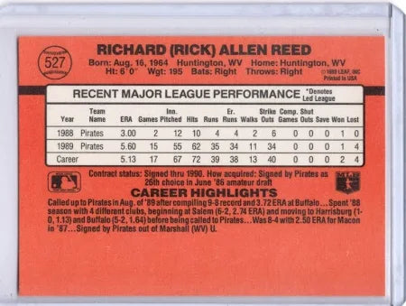 1990 Donruss Richard (Rick) Allen Reed Baseball Card #527