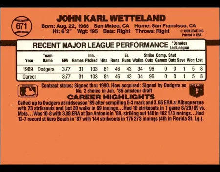 1990 Donruss John Karl Wetteland Baseball Card #671