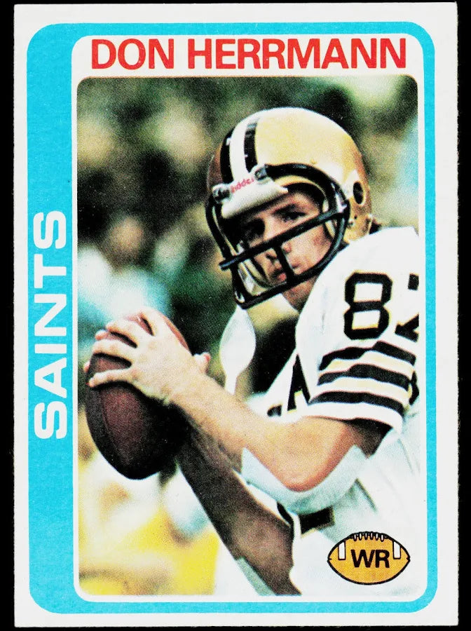 1978 Topps Don Herrmann Football Card #243 Like-New Condition. Ships USP First-Class.Don has enjoyed a banner come- back with the Saints after having 5 campaigns with the Giants. Has great hands and makes tough catches.
