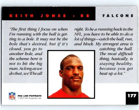 1991 NFL Pro Line Portraits Keith Jones Football Card #177 Like-New Condition. Ships USP First-Class.