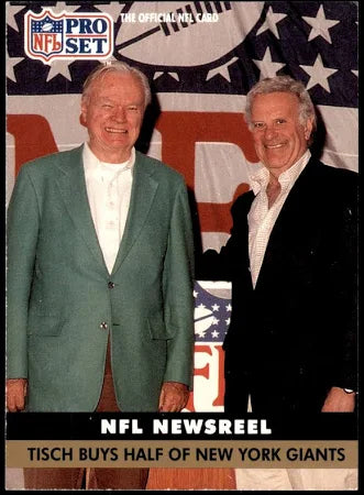 1991 NFL Pro Set Tish Buys Half of New York Giants Pays $60 Milliion For Champions Football Card #343 Like-New Condition. Ships USP First-Class.