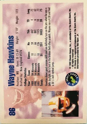 1992 Classic Draft Picks Wayne Hawkins Football Card #86 Like-New Condition. Ships USP First-Class.